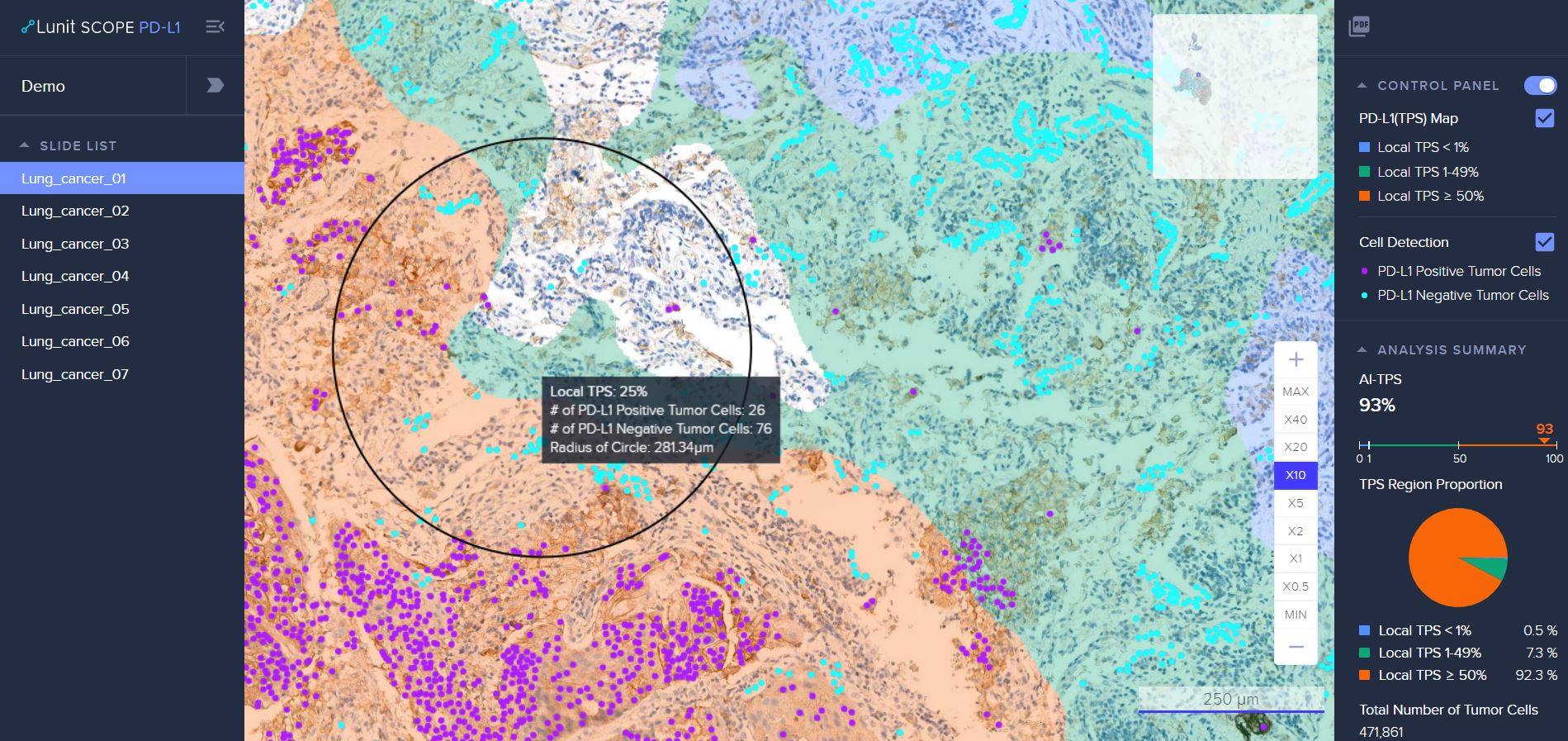 ▲ Online demo of Lunit SCOPE PD-L1, analyzing the tissue slide image