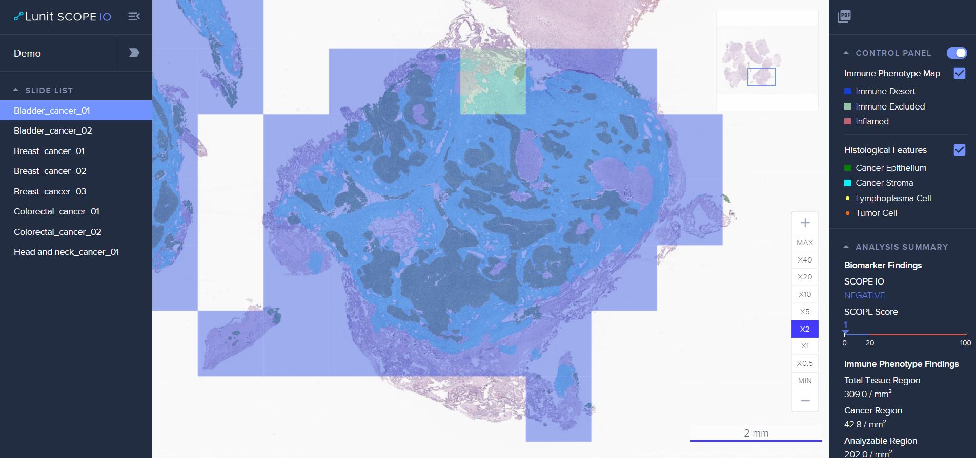 ▲ Online demo of Lunit SCOPE IO, analyzing the tissue slide image