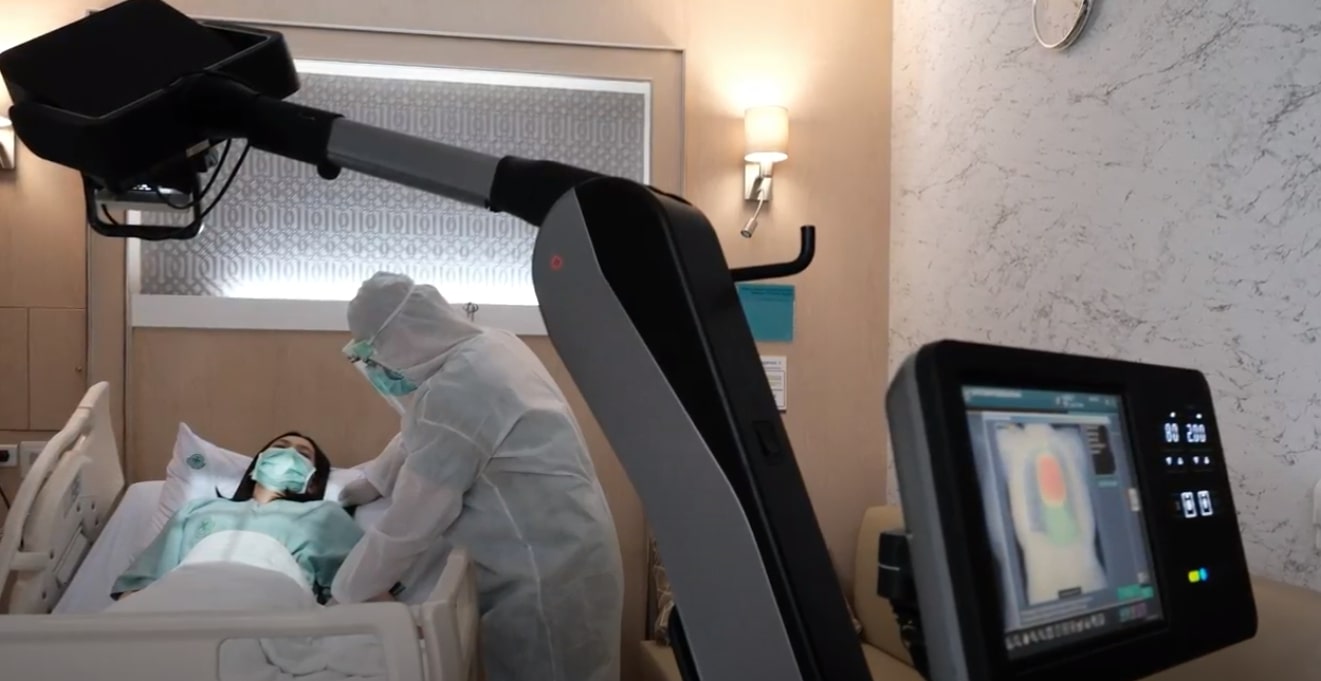 ▲ A medical professional is diagnosing the COVID-19 symptoms of a patient, using Lunit AI applied in Fujifilm's FDR Nano