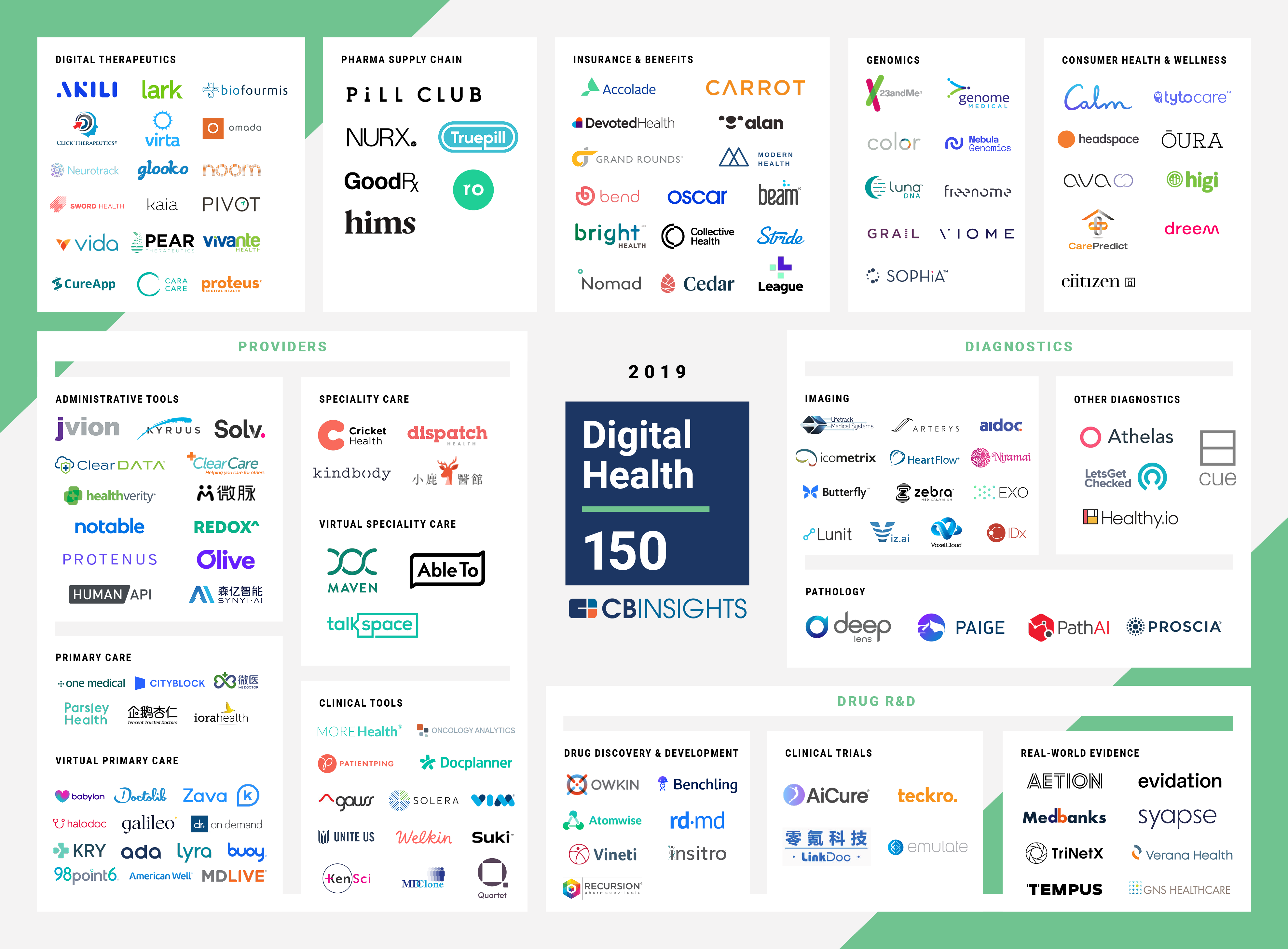 “From pharmaceuticals to patient care, technology is rapidly changing healthcare, and The Digital Health 150 showcases the 150 best startups spearheading innovation and change in the sector,” said CB Insights CEO Anand Sanwal. “It's a privilege to use CB Insights' data to identify and shine a light on these companies, and we look forward to tracking their success in 2019 and beyond."