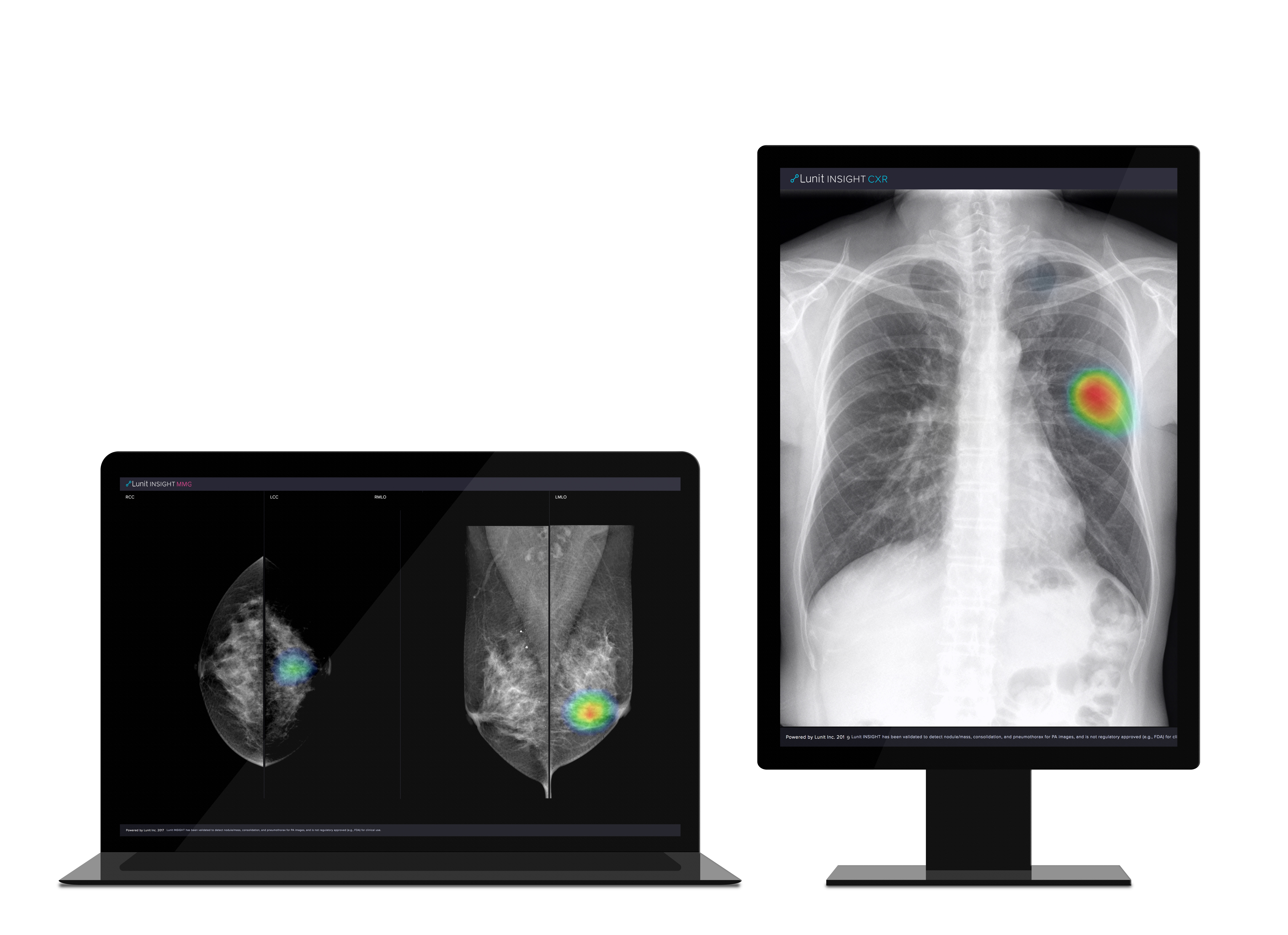 Image of Lunit INSIGHT MMG (right) and Lunit INSIGHT CXR (left)